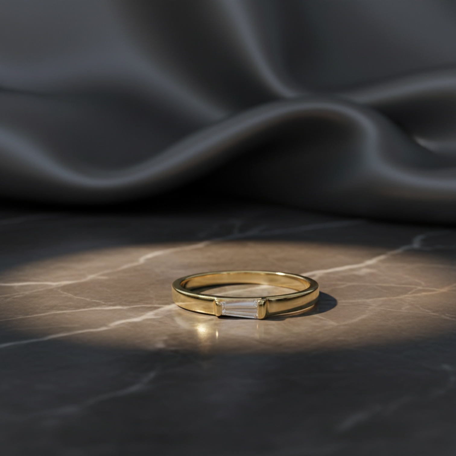 Timeless and refined, Zaria Ring brings quiet radiance with a asymetical baguette stone featuring Art Deco geometry and a unique style. Perfect for everyday wear and special moments alike.