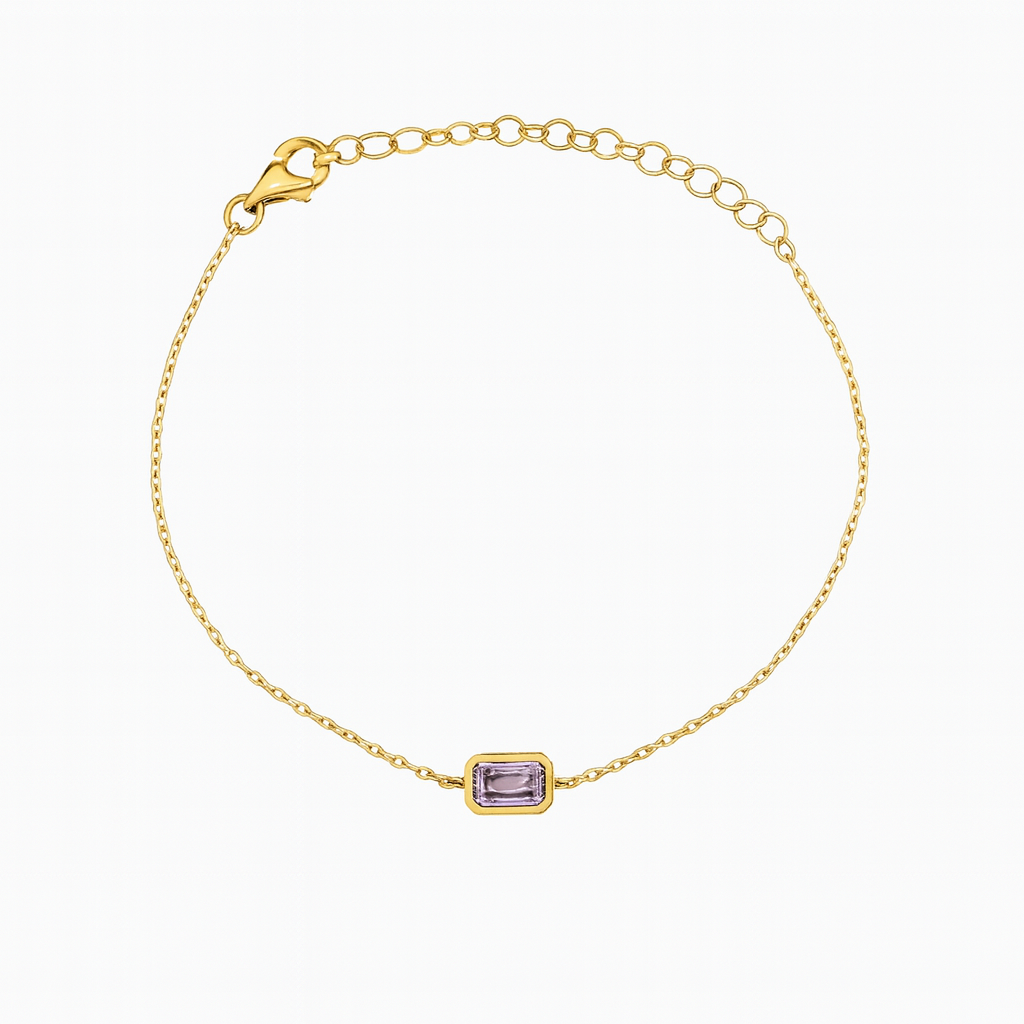 Ethereal and modern, the soft-lilac octagonal stone adds a gentle wash of color on a sleek cable chain. Low-key by itself, dreamy layered.