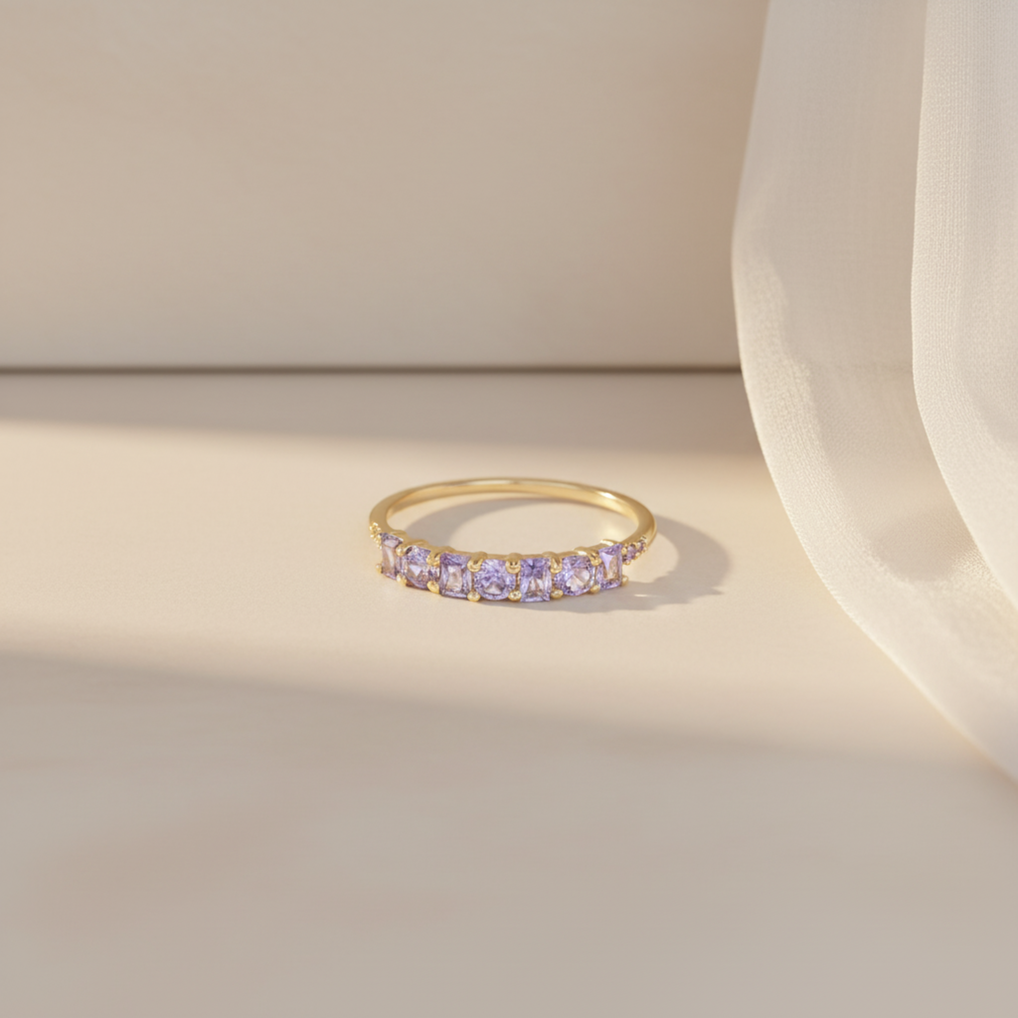 Crafted to perfection, Lila Ring showcases meticulous detailing in tanzanite featuring Art Deco geometry and stackable comfort. Made for effortless layering or a clean, solo statement.